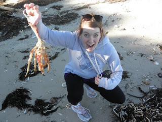 | This is on the way to wineglass bay, i dont know if you can see all of the dead crabs on the left...but they were everywhere!!! thousands!! and then there was a penguin....and then...a seal!! WEIRD |
